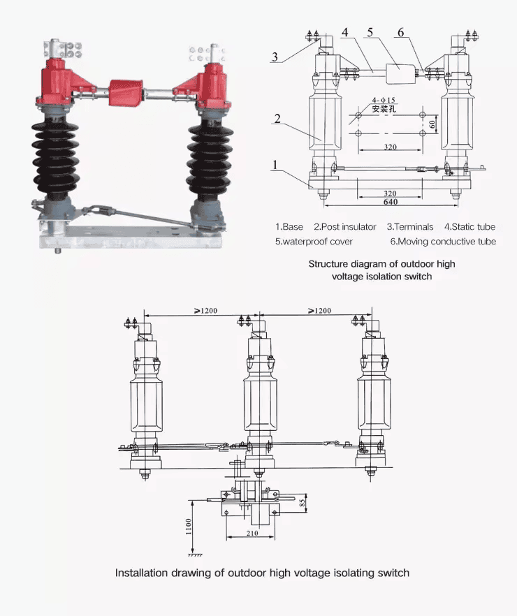 L'interruttore di disconnessione in tre fasi GW4 da 35kV per interruttore di disconnessione in tre fasi è un componente vitale dei sistemi elettrici ad alta tensione. È dotato di un design a tre poli con una lama rotante centrale, consentendo la connessione e la disconnessione del circuito manuale o gestito dalla potenza. Utilizza la stessa operazione di apertura e chiusura dell'interruttore principale. Durante l'installazione, i contatti sinistra e destra vengono ruotati di 90 gradi sullo stesso lato. L'interruttore di terra viene ruotato per primo, quindi inserito dritto. La lama principale è realizzata in rame, con spessi contatti placcati in argento. Collega una struttura terminale conduttiva multistrato con un connettore flessibile a uno strumento di messa a terra. Lo strumento di messa a terra è costruito in tubi conduttivi in lega di alluminio, con spessi contatti in rame placcati in argento e parti a caldo in metallo esposte zincati. Utilizzando materiali di alta qualità e design avanzato, offre un'eccezionale adattabilità ambientale, in grado di resistere a condizioni esterne dure come venti forti e forti piogge.