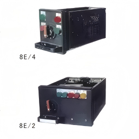 Sono disponibili cinque dimensioni, tutte basate su un'altezza 8E (200 mm). Il design modulare consente un'altezza di installazione effettiva dei componenti di 1800 mm, risultando in una disposizione complessiva dell'armadio più snella ed esteticamente gradevole. •8E/4: 4 cassettiere assemblate in parallelo in uno spazio di 200 mm di altezza, 150 mm di larghezza e 400 mm di profondità